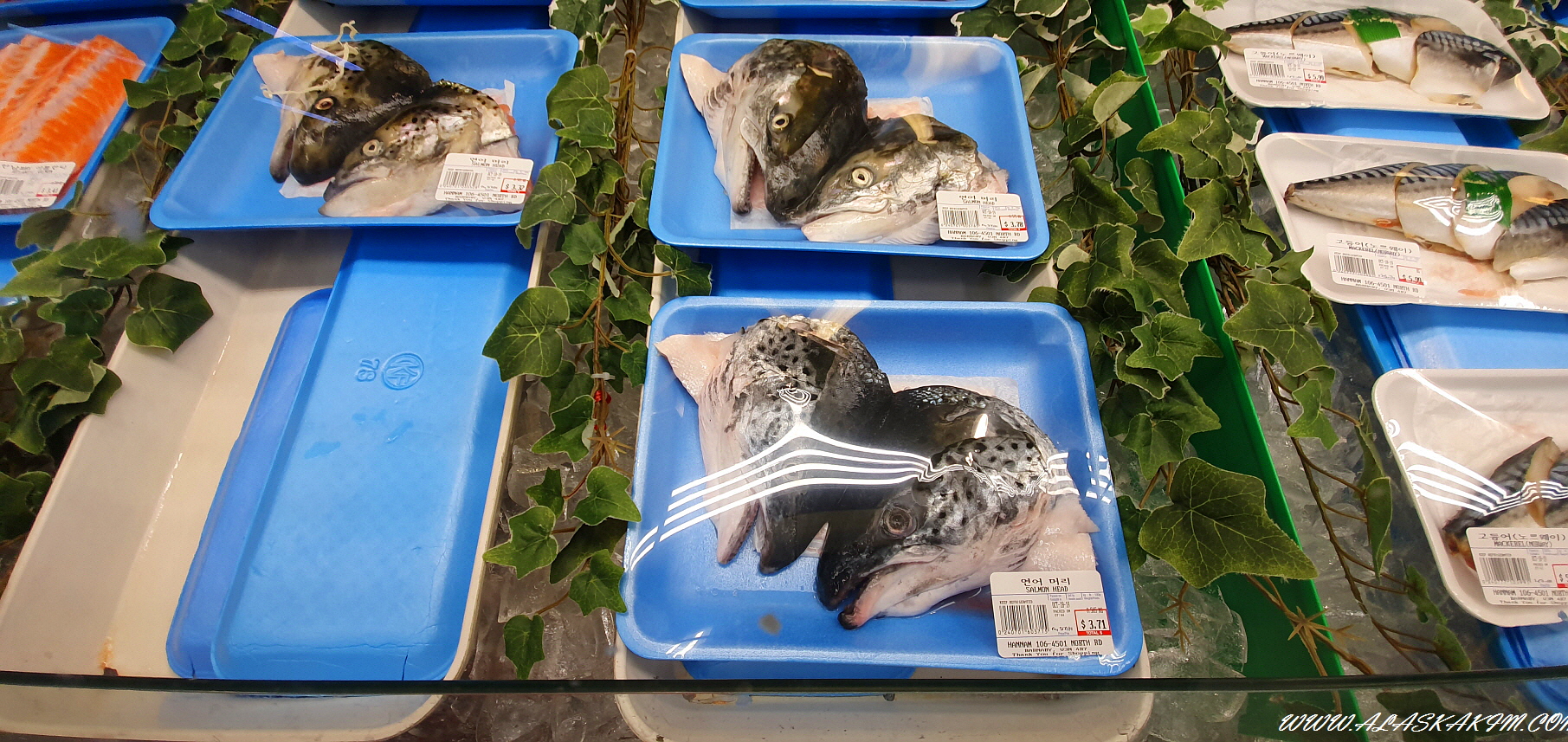 캐나다 마트 풍경인데, 세상에나 연어 머리도 잘라서 팔더군요.