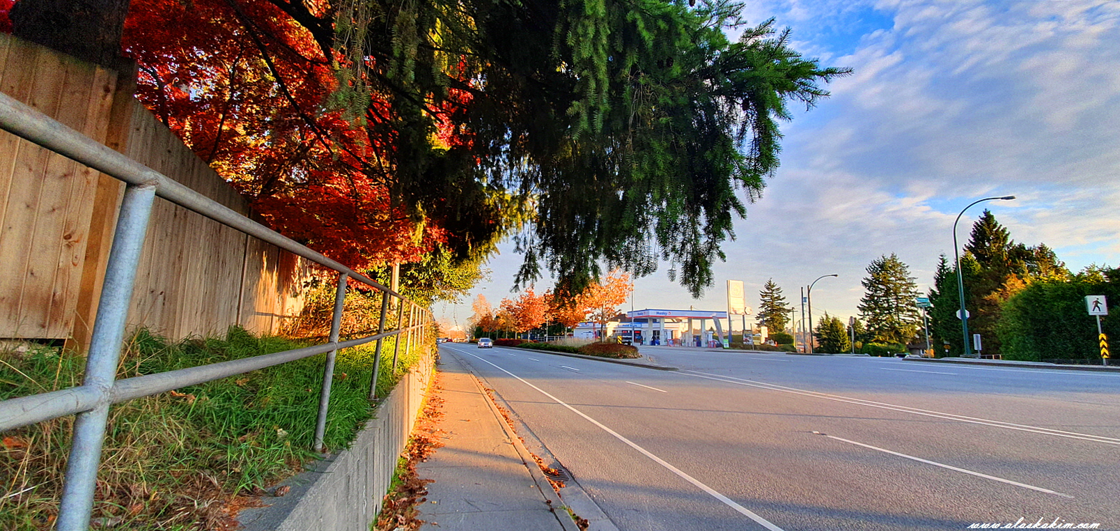이 길은 낙엽과 단풍 진 가로수들이 멋진, 한가한 도로입니다.