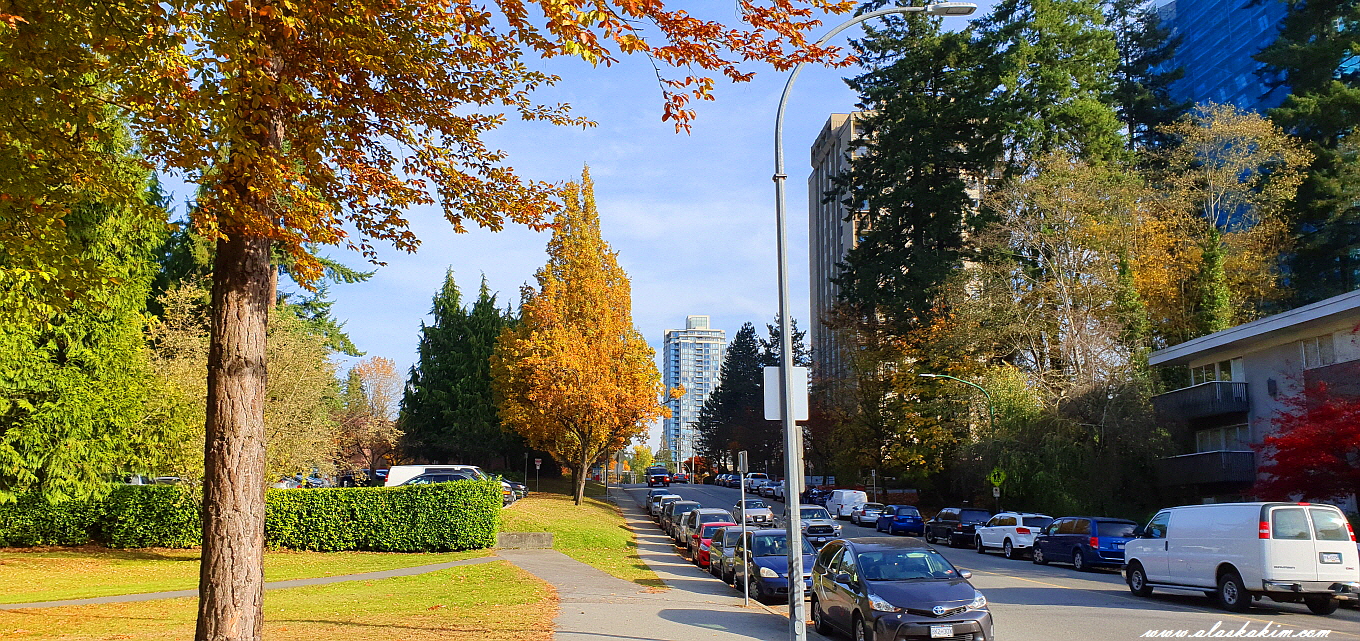 이 길은 낙엽과 단풍 진 가로수들이 멋진, 한가한 도로입니다.