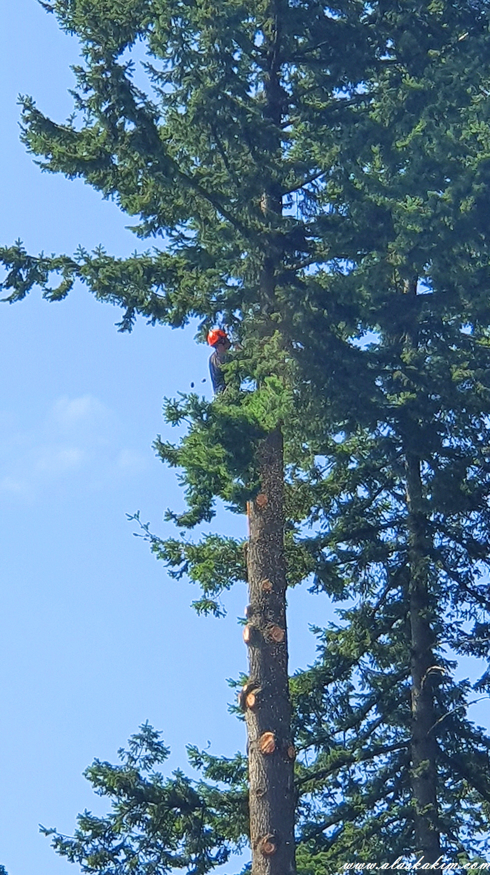 올려다보았더니 , 가지치기가 한창이었습니다.