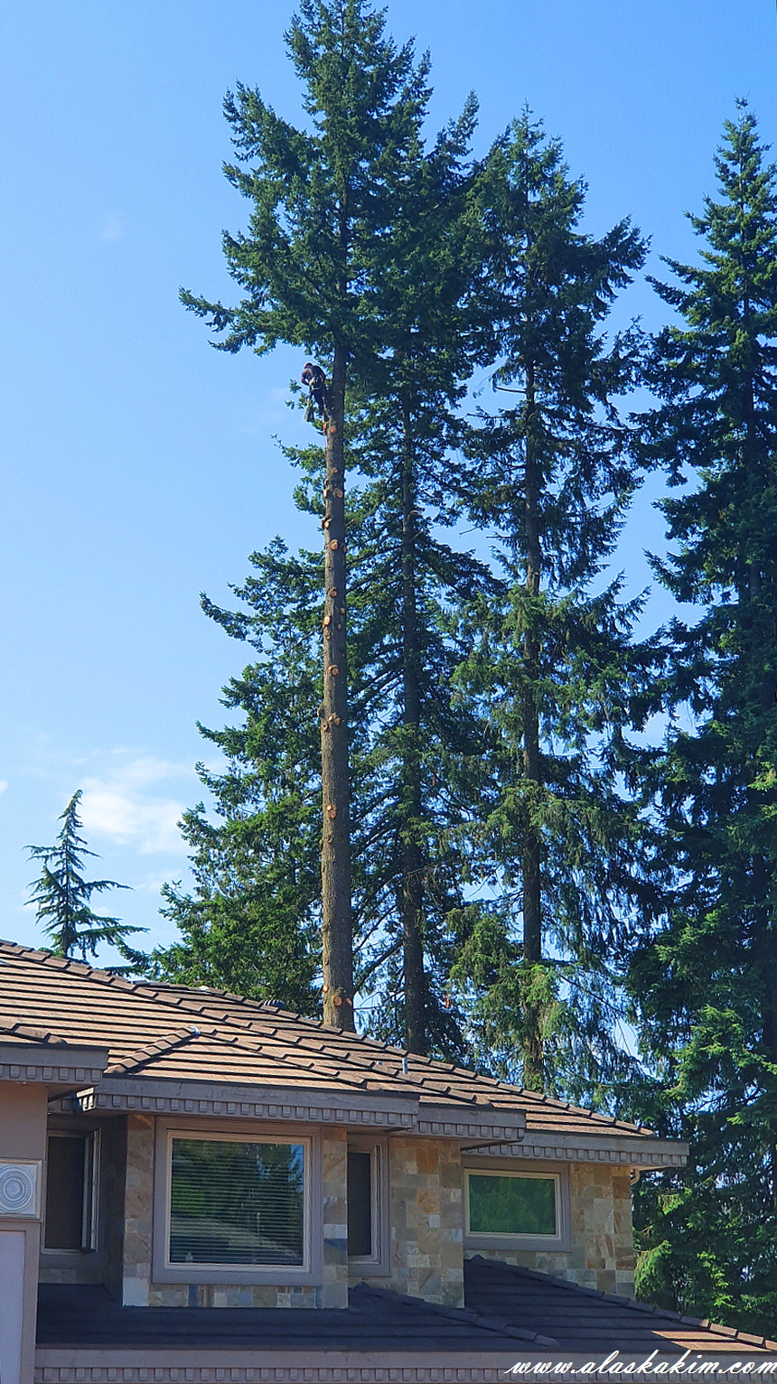 올려다보았더니 , 가지치기가 한창이었습니다.
