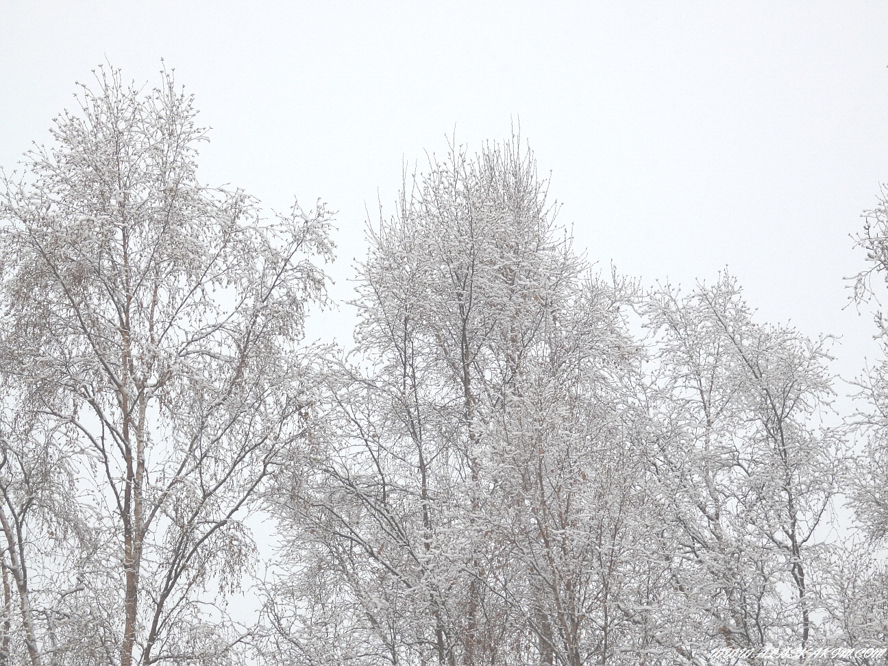 메마른 자작나무 사이로 눈은 펄펄 내리고 있습니다.