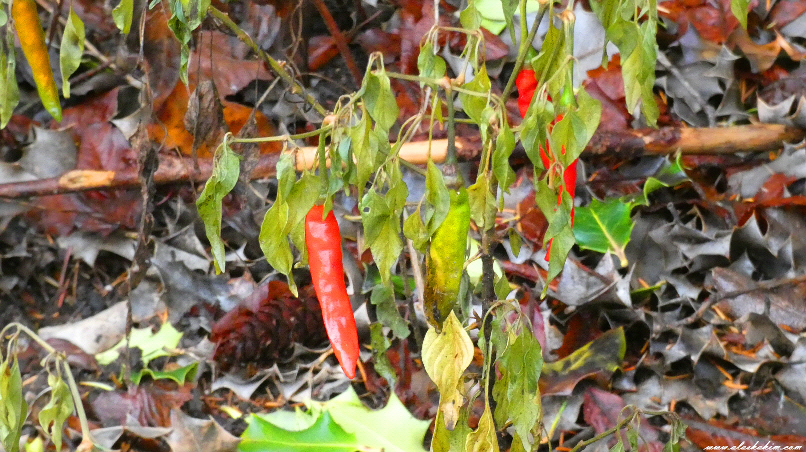 두 개의 빨간 고추가 아직도 남아 있네요.