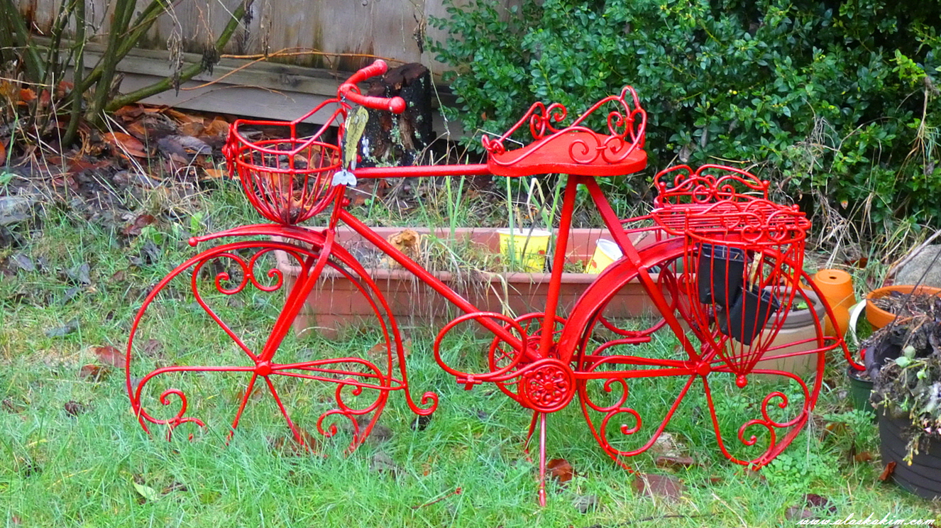 빨간 자전거와 정원이 어울리는 것 같습니다.