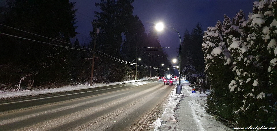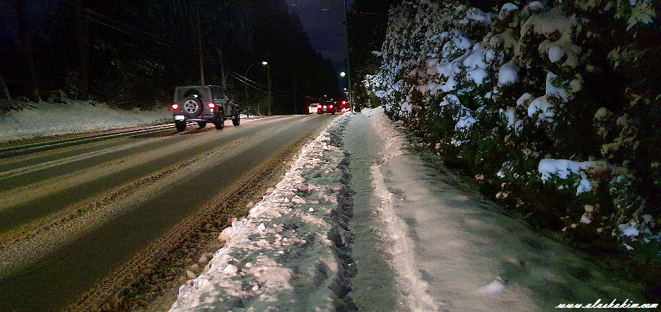 다행히 염화칼슘을 뿌려 도로에 눈이 보이지 않지만