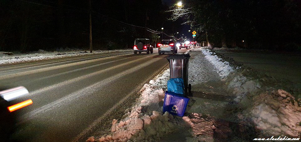 눈이 많이 왔다고 쓰레기차도 오지 않았나 봅니다.