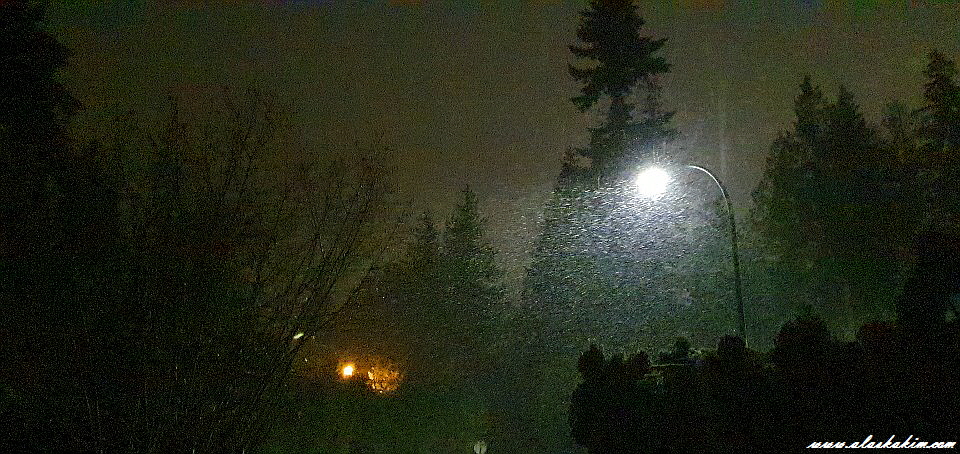 새벽에 나오니, 하늘에서 눈을 쏟아붓듯이 눈이 내리더군요.