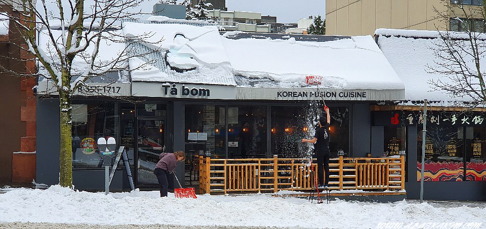 한인이 운영하는 식당들은 직원들을 동원해서 눈을 치우지만,