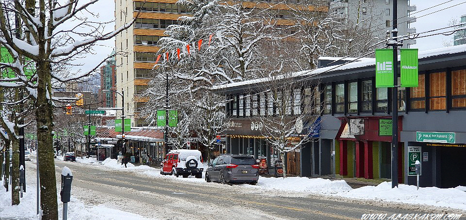 제설작업 자체가 없는 다운타운 도로의 풍경입니다.