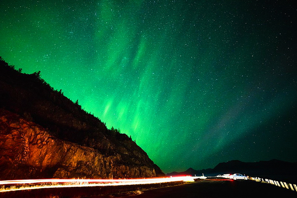Anchorage의 스워드 하이웨이에서 만난 오로라.