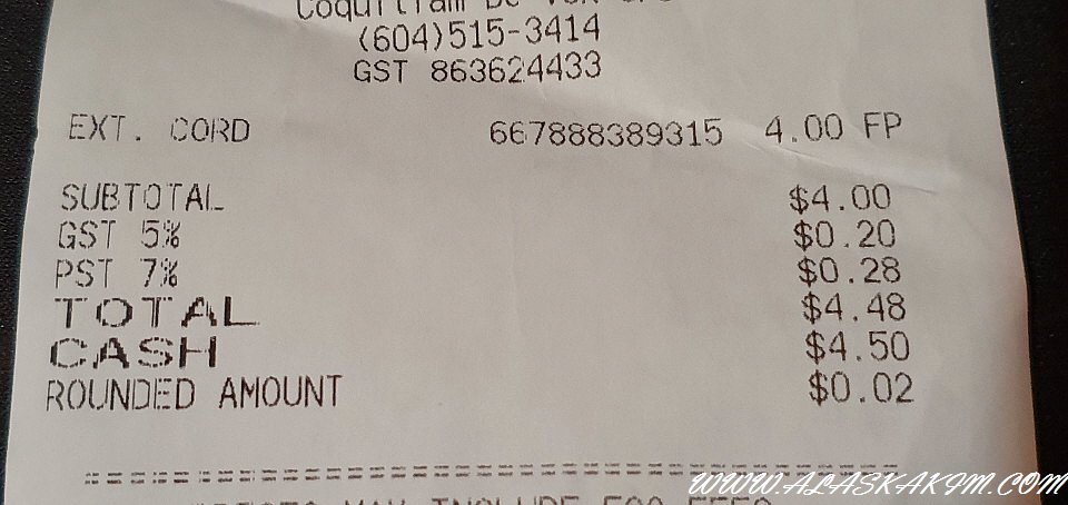 GST 와 PST 5%와 7% 총, 12% 세금이 붙습니다.
