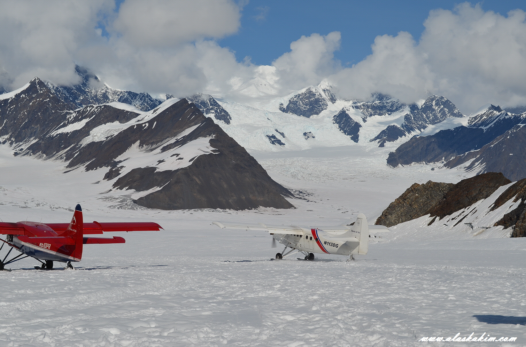 디날리 산에 랜딩을 하여 만년의 신비를 간직한 눈의 내음과