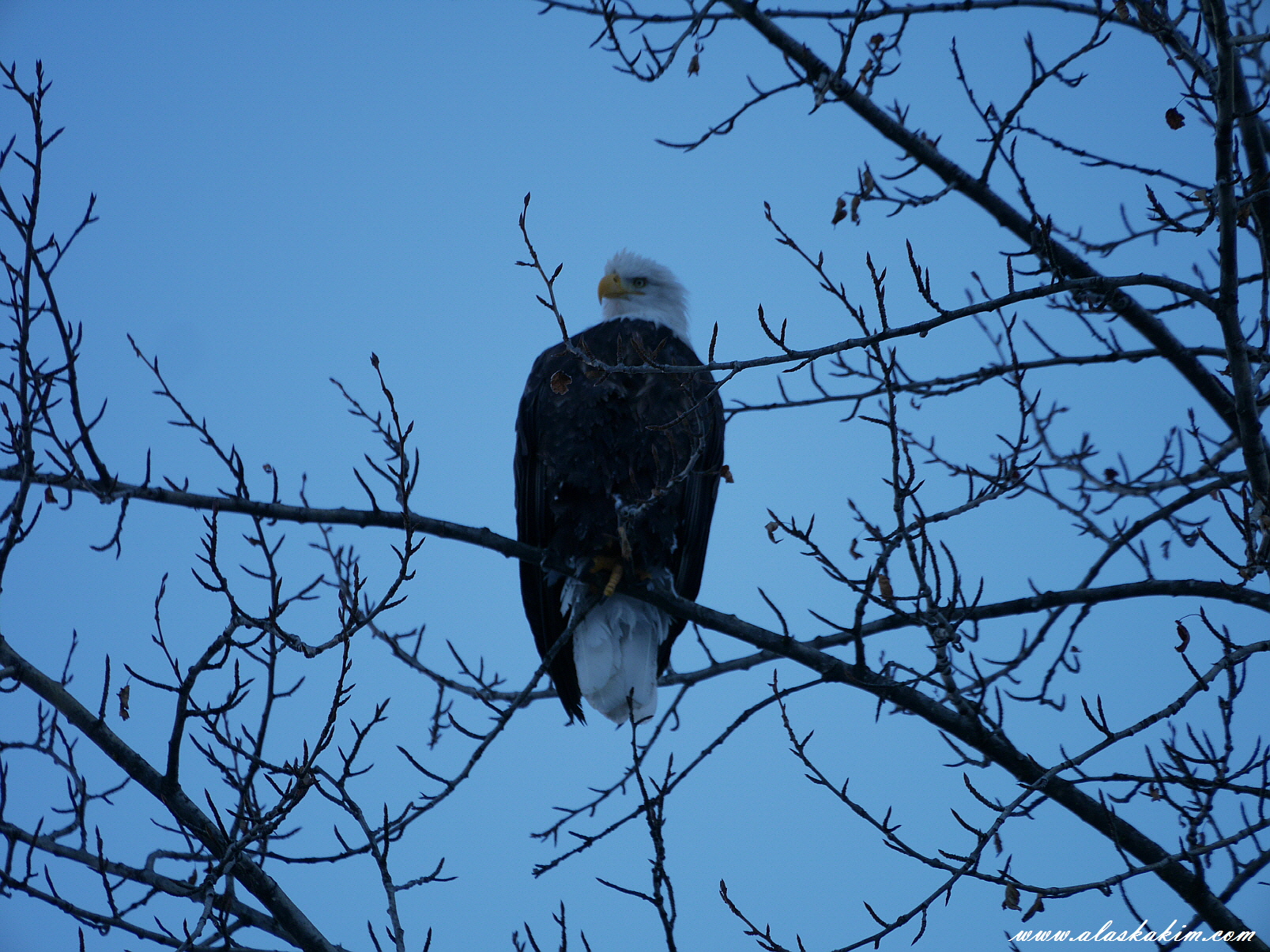 집 앞에서 저를 위해 보초를 서는 것 같은 흰머리 독수리.