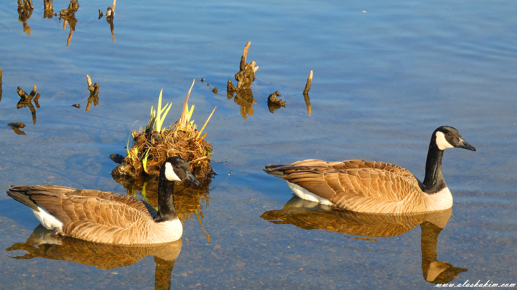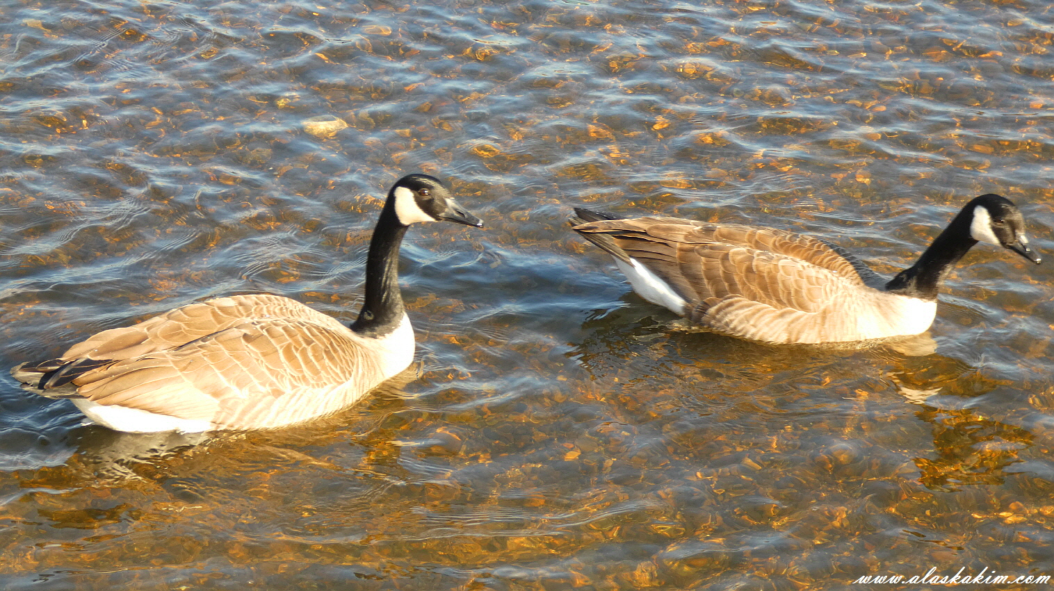 캐나다 기러기 한쌍이 유유히 노닐고 있습니다.