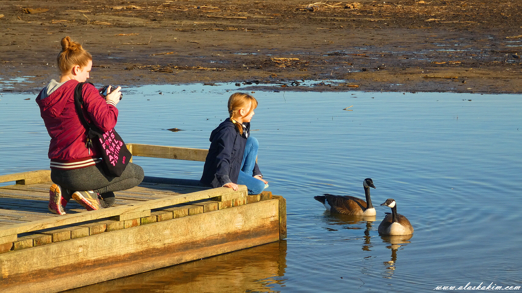 캐나다 기러기들이 먹이를 혹시나 줄까 하면서