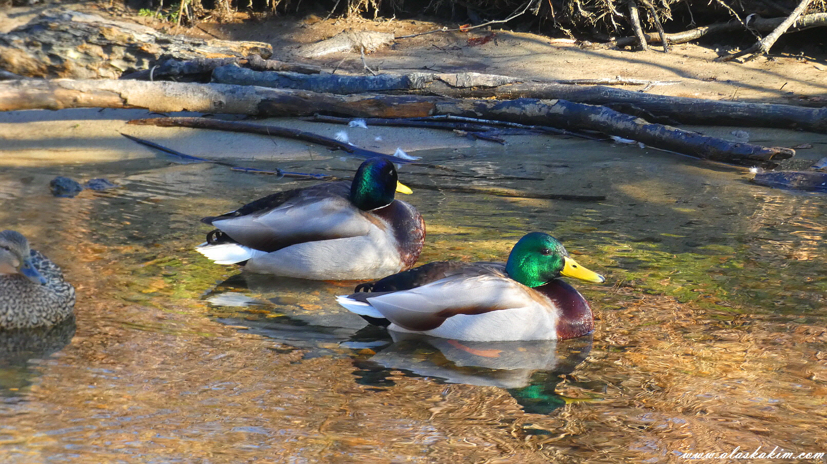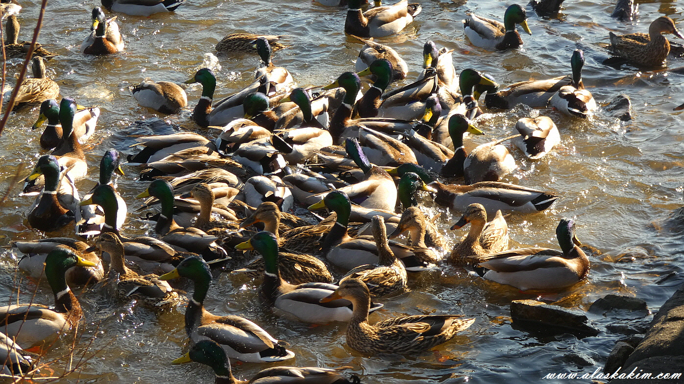 오늘도 변함없이 자기 자리를 지키는 청둥오리 수컷입니다.
