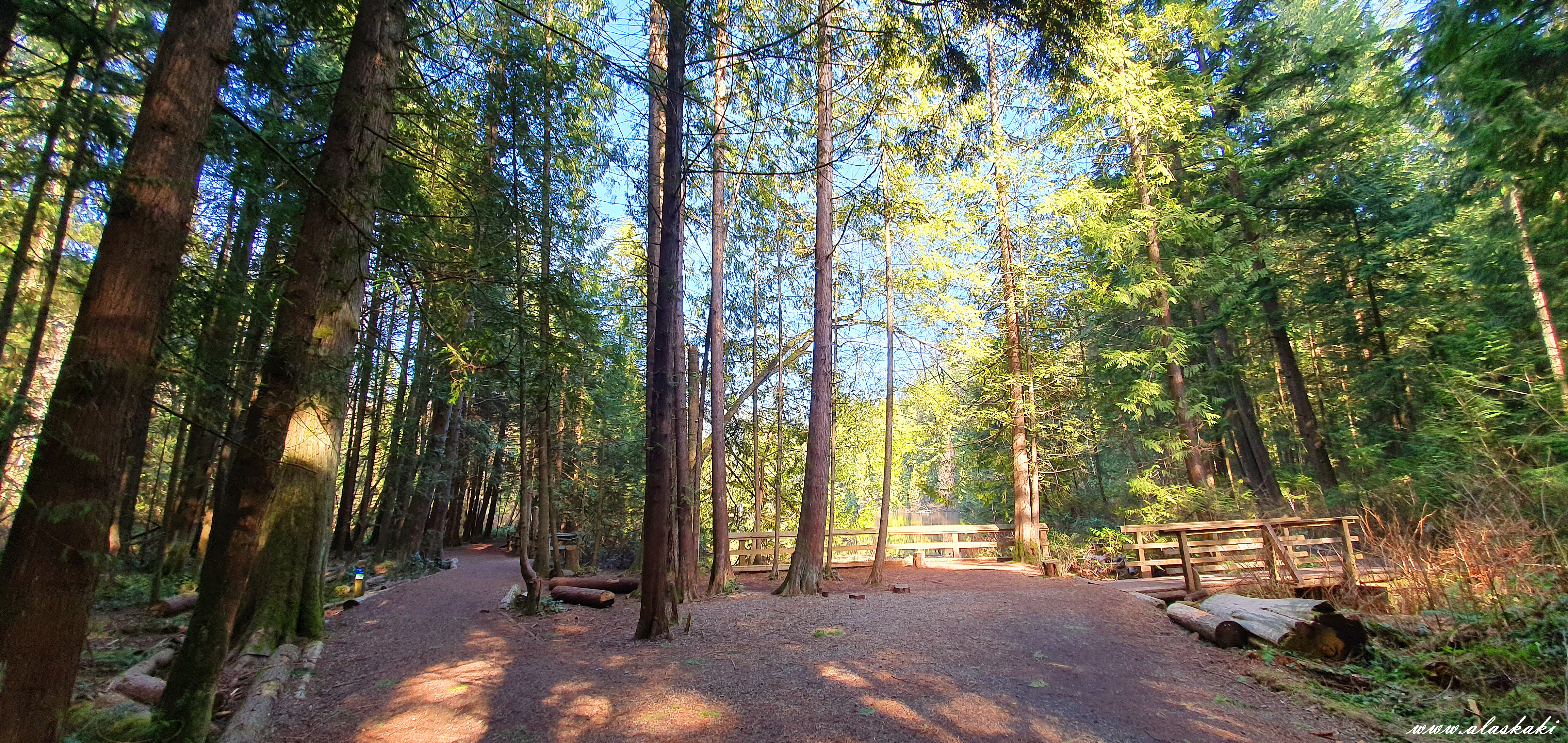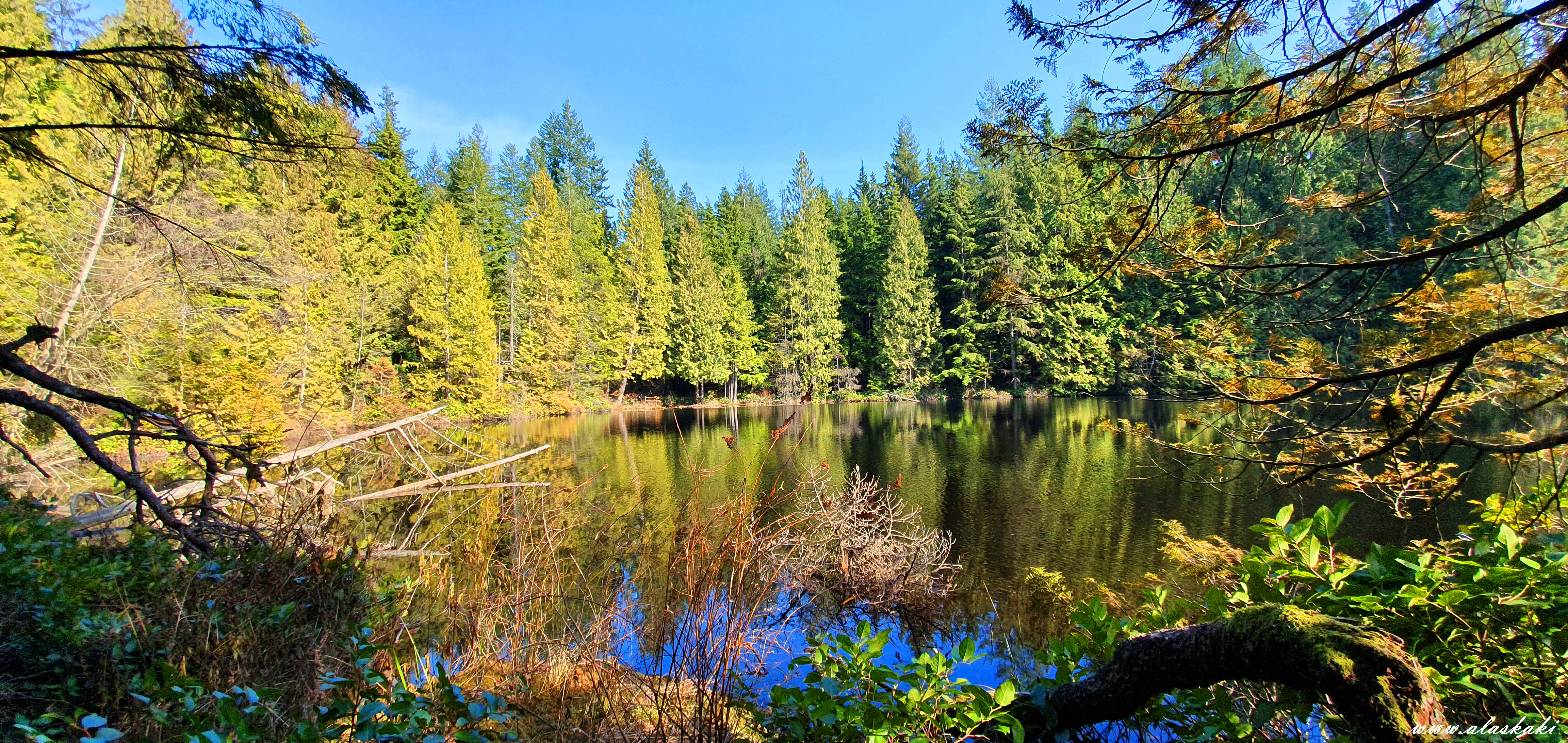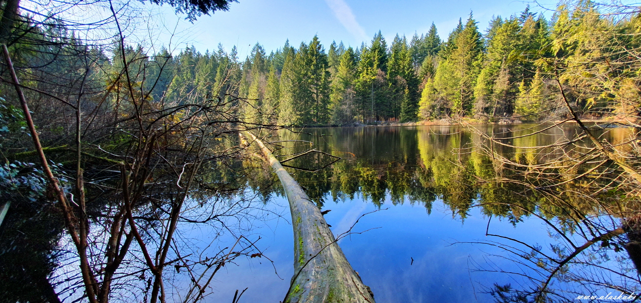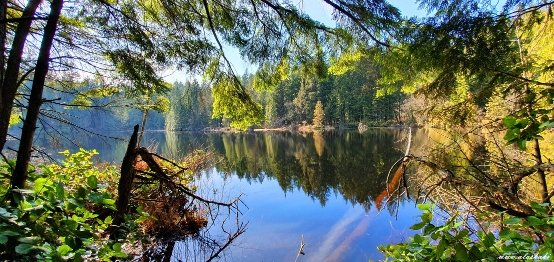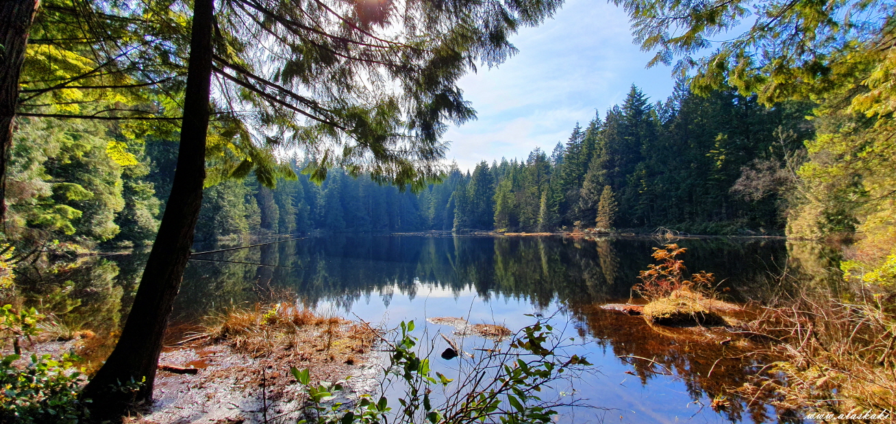 수많은 삼나무와 작지만 아름답고 고요한 호수를