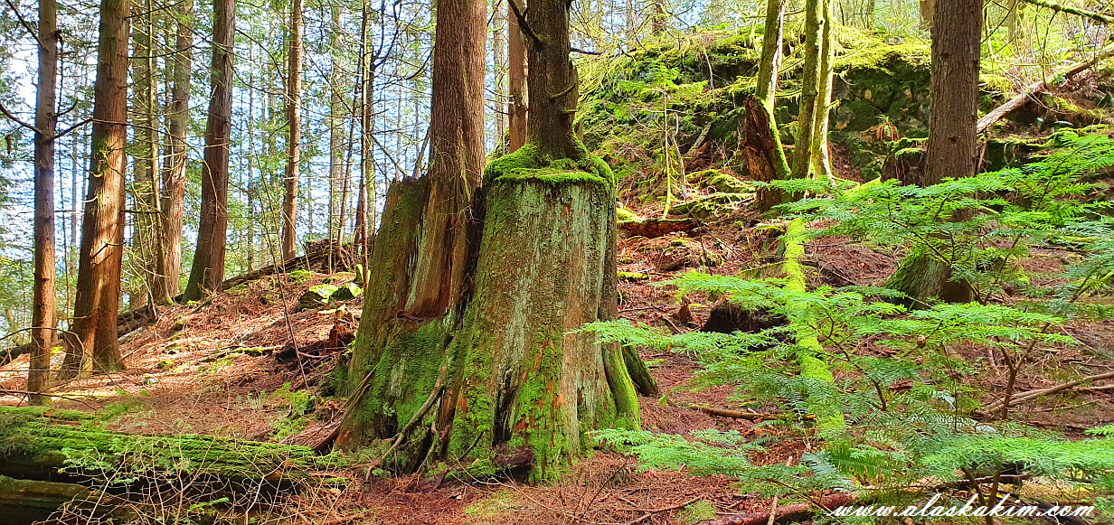 쉬어 가라고 만든 것 같은 나무 밑동이 싱그러운 나무 냄새로