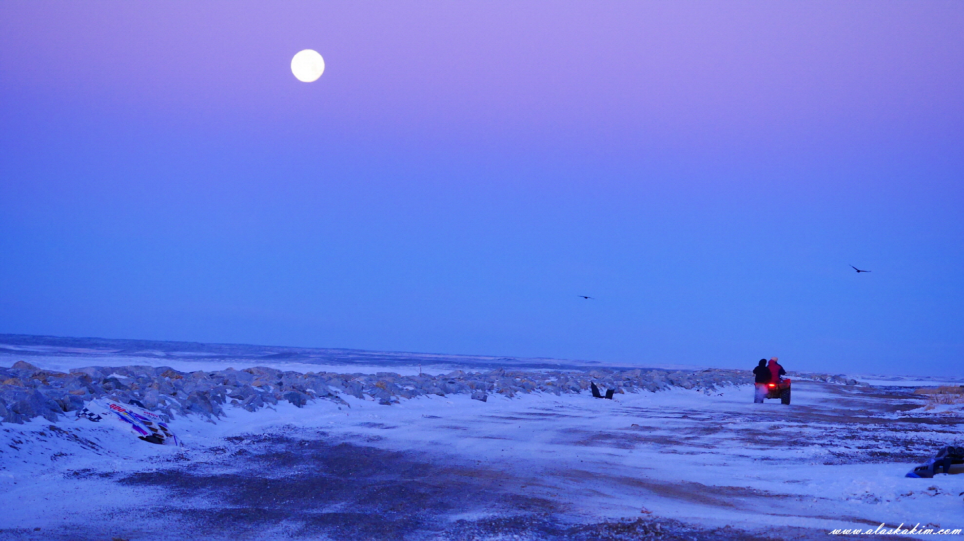 이른 새벽에 스노 머쉰이나 ATV(산악용 자동차)를