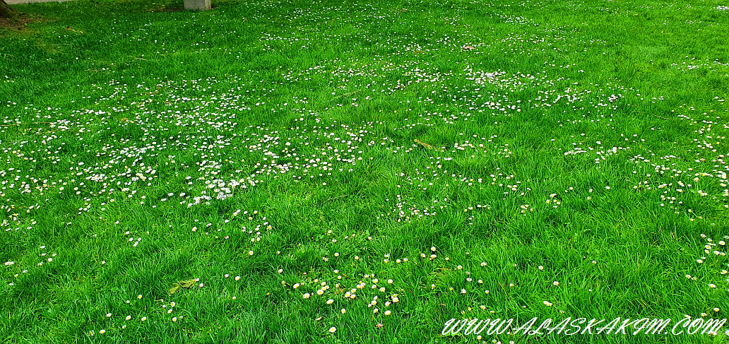 잔디 위에 하얀 눈송이를 뿌려 놓은 것 같네요.