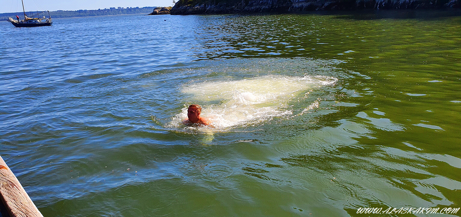 이내 물로 뛰어들면서 수영을 하고 나오면서 춥다고