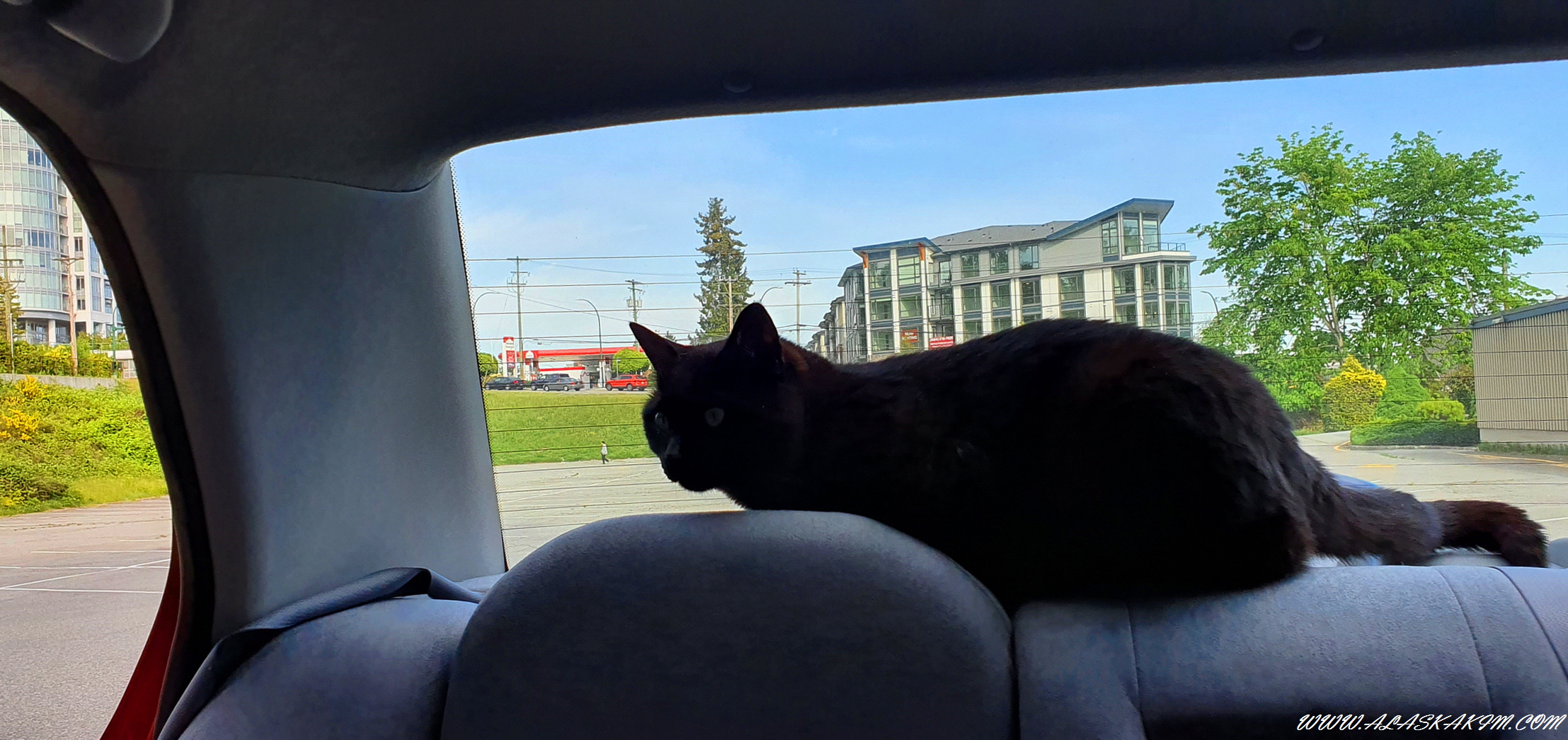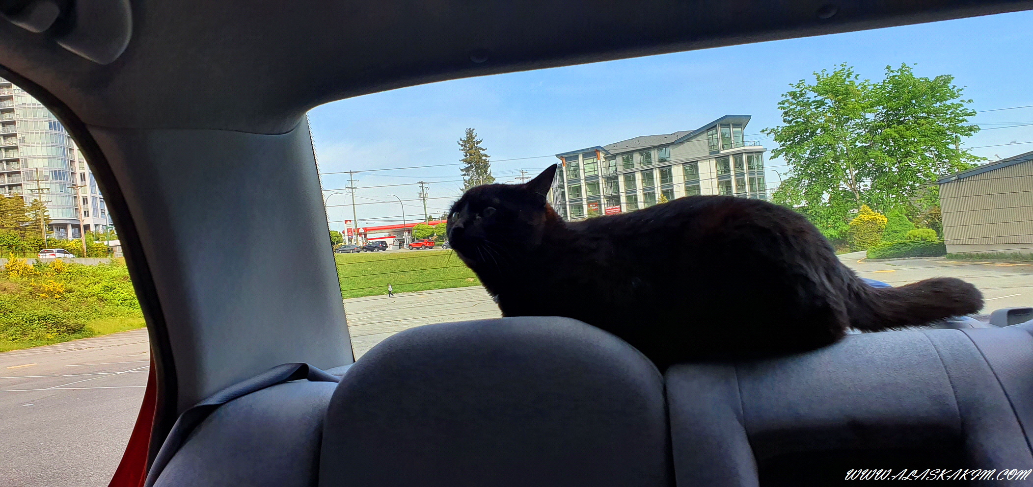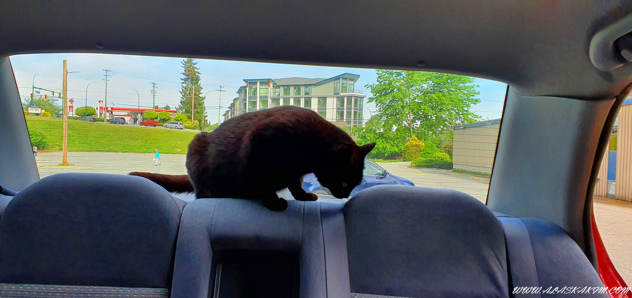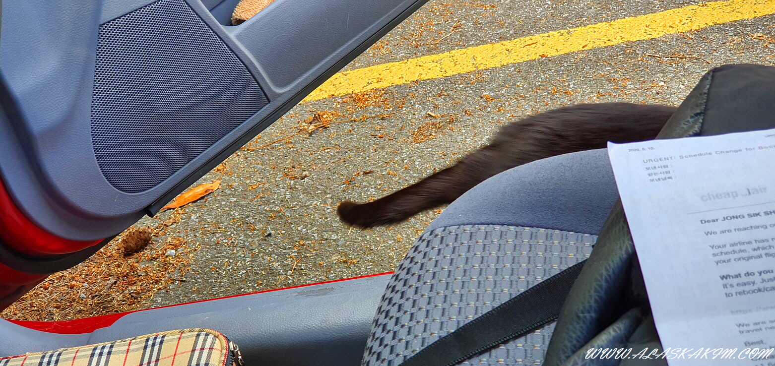 어느새 뒷문으로 올라타 시트에 발톱을 갈더니,