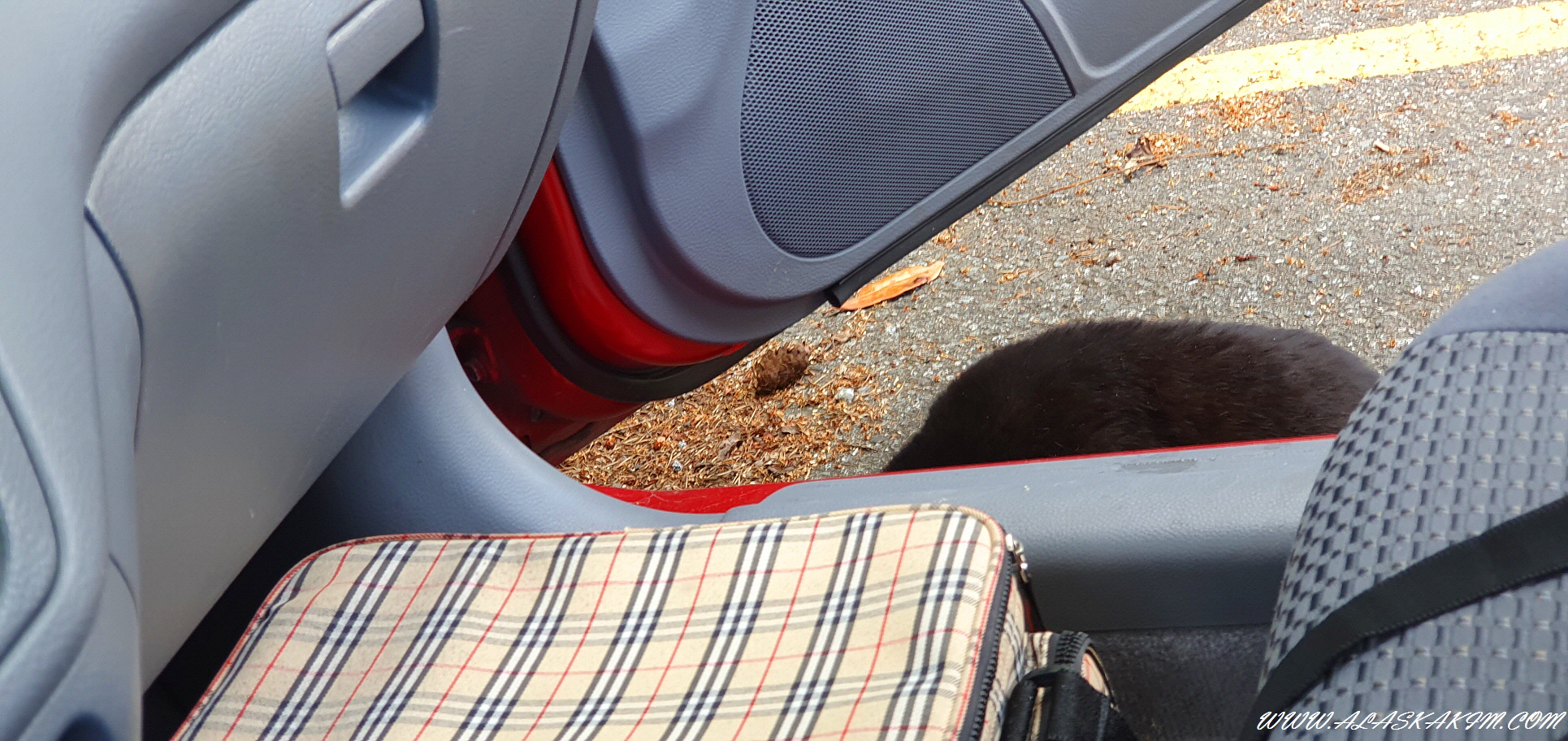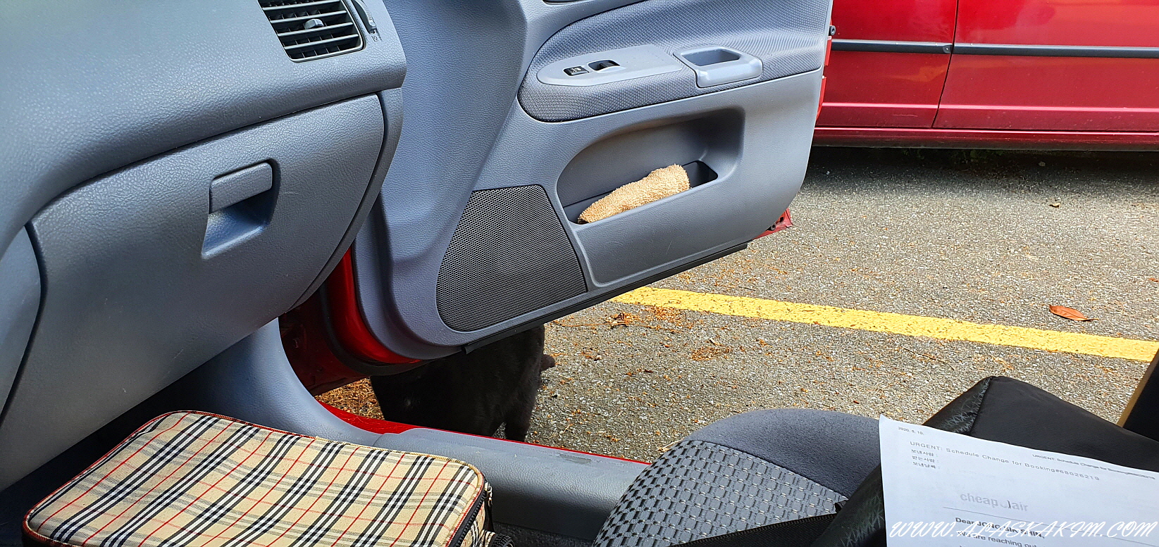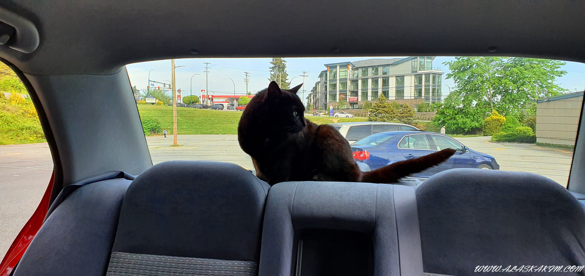 어느새 뒷문으로 올라타 시트에 발톱을 갈더니,