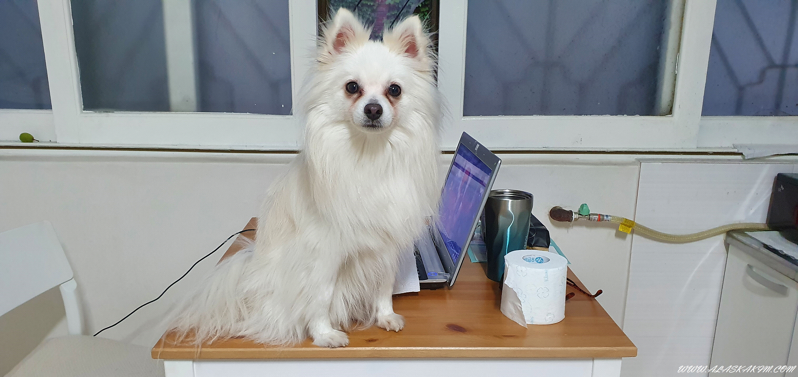 제가 컴퓨터를 하면 , 관심을 끌기 위해 저렇게 책상 위로