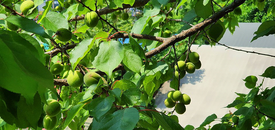 집 앞 주차장에 아직 키가 닿지 않아 무사히 남아 있는 매실입니다.