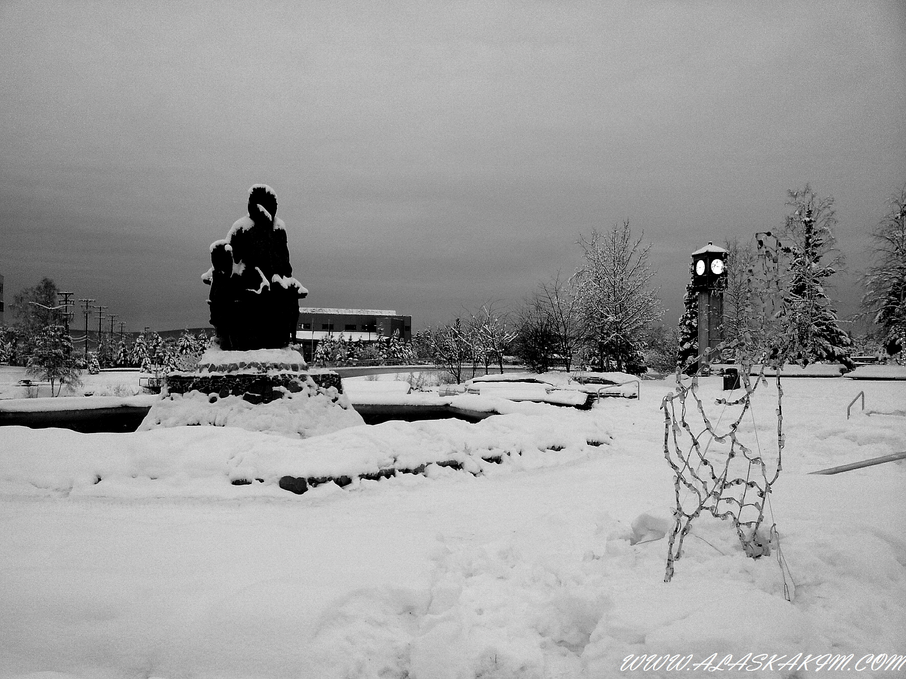 페어뱅스 다운타운 유일한 분수대 광장이며, 시계탑이라