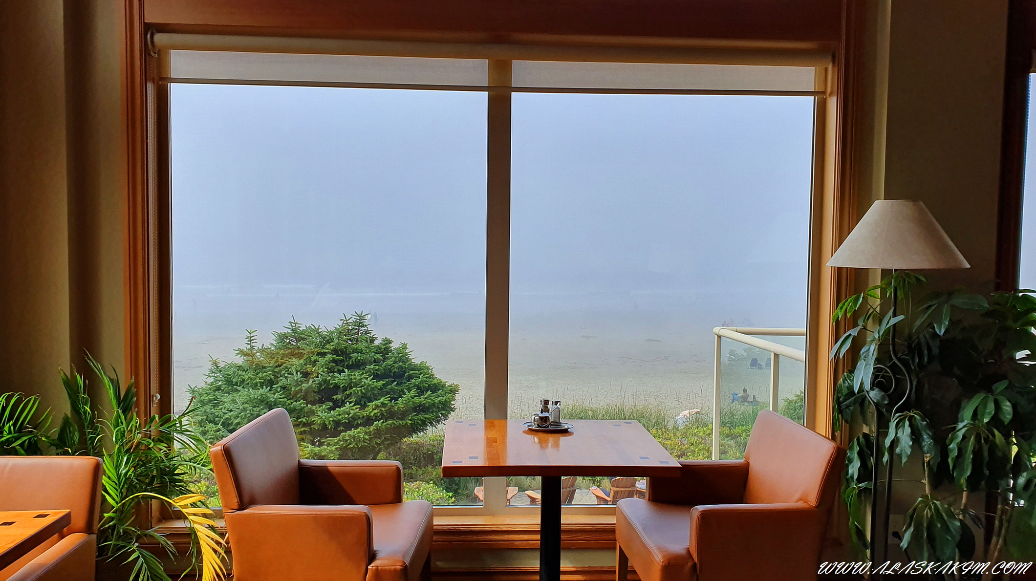 짙은 안개로 인해 바다가 보이지 않을 정도입니다.