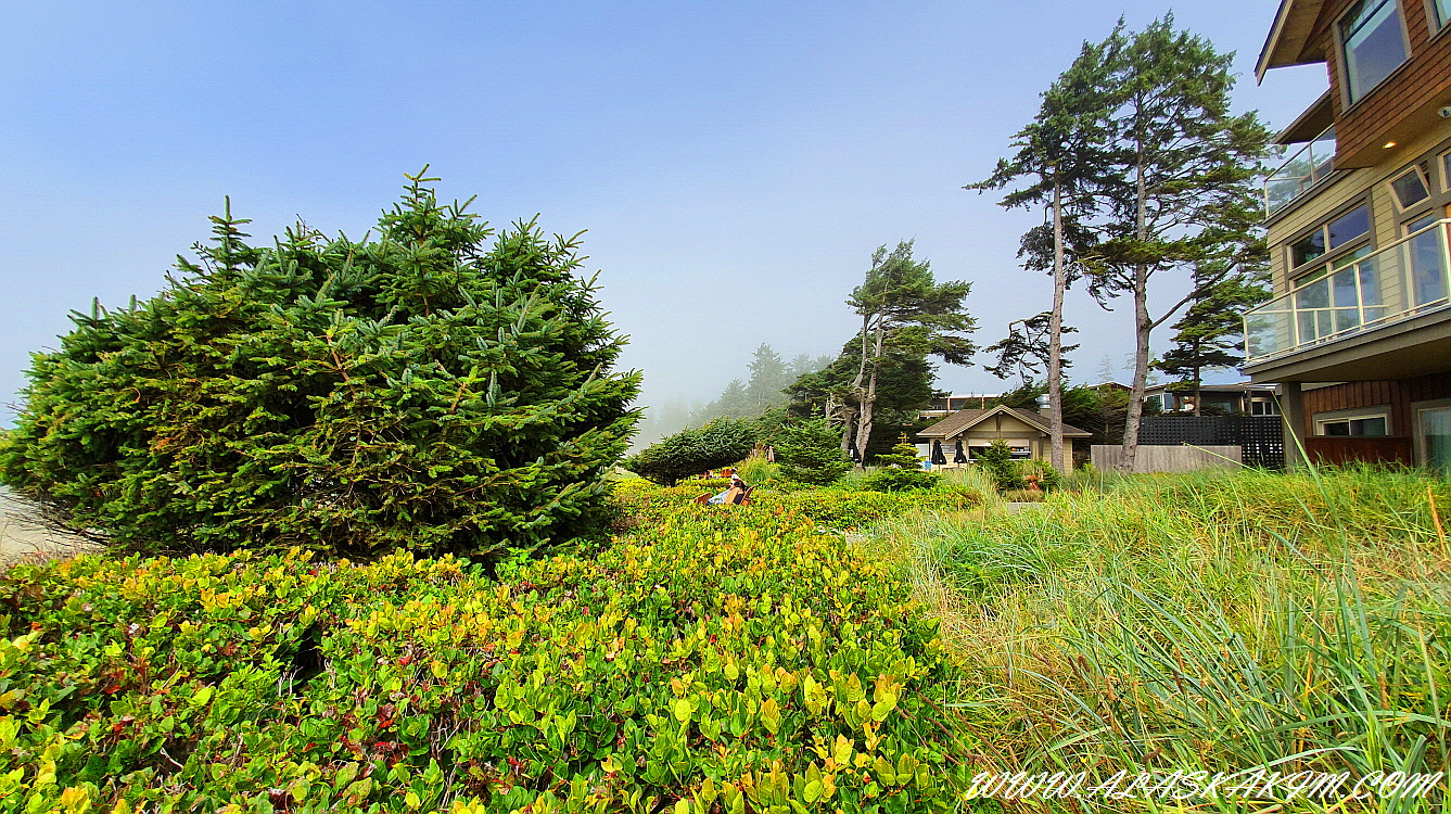 소나무들이 바닷바람에 한쪽으로 자라나네요.