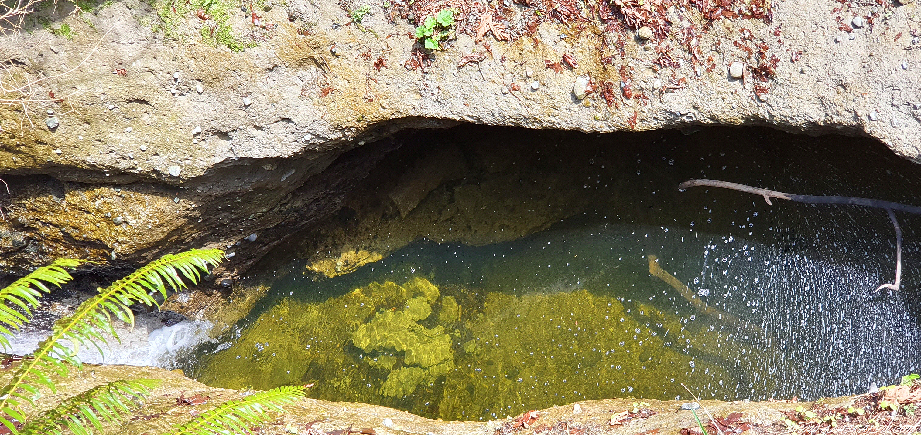 계곡에서 내려오는 물이 일단 고였다가 다시 넘쳐흐르면서