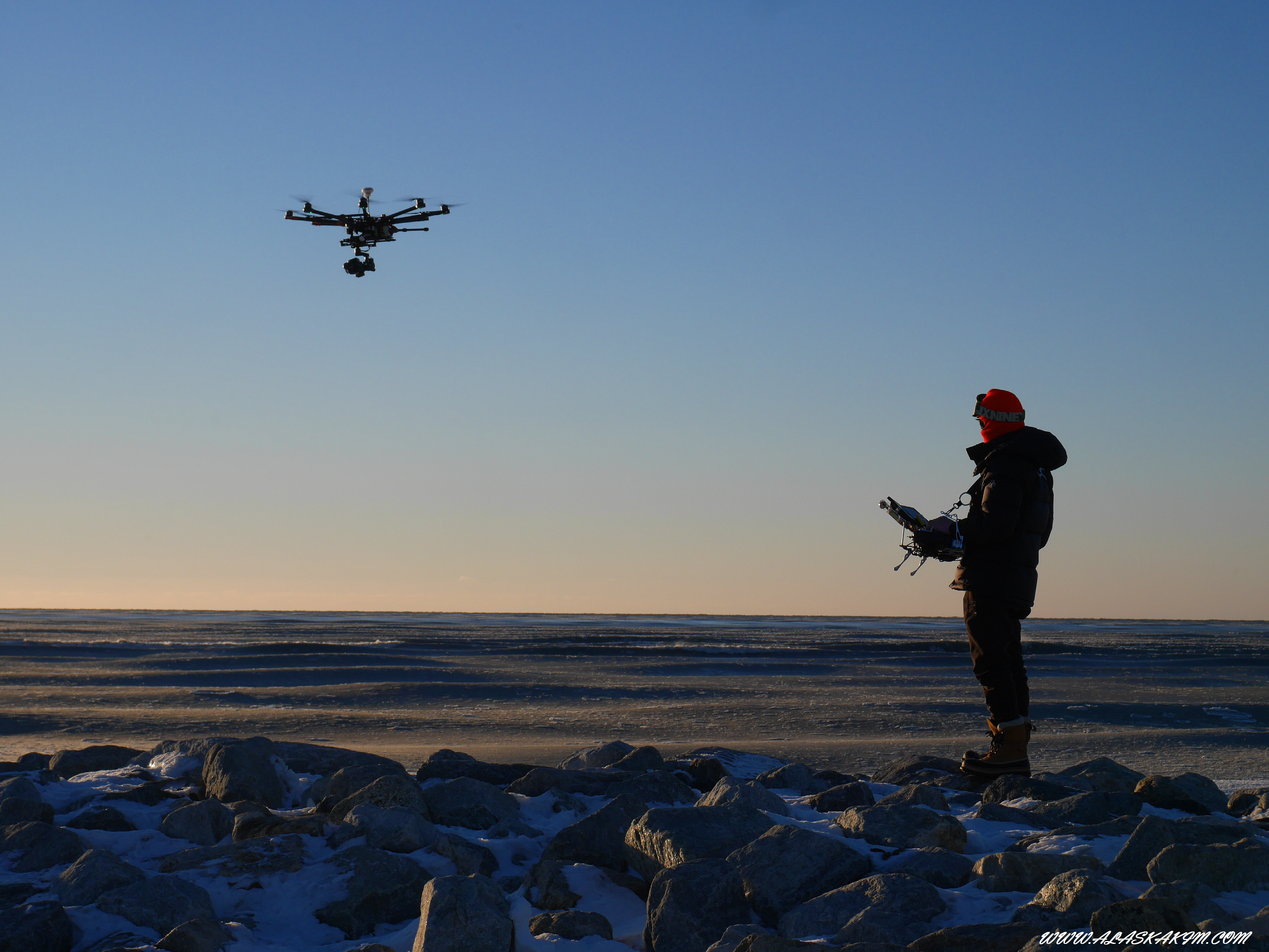 바닷가의 얼음과 드론.