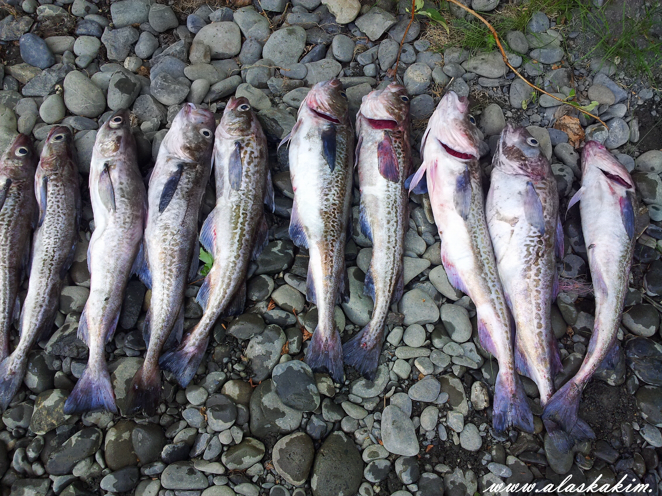 대구와 생태를 낚아 깨끗하게 목욕을 시키고 사진을