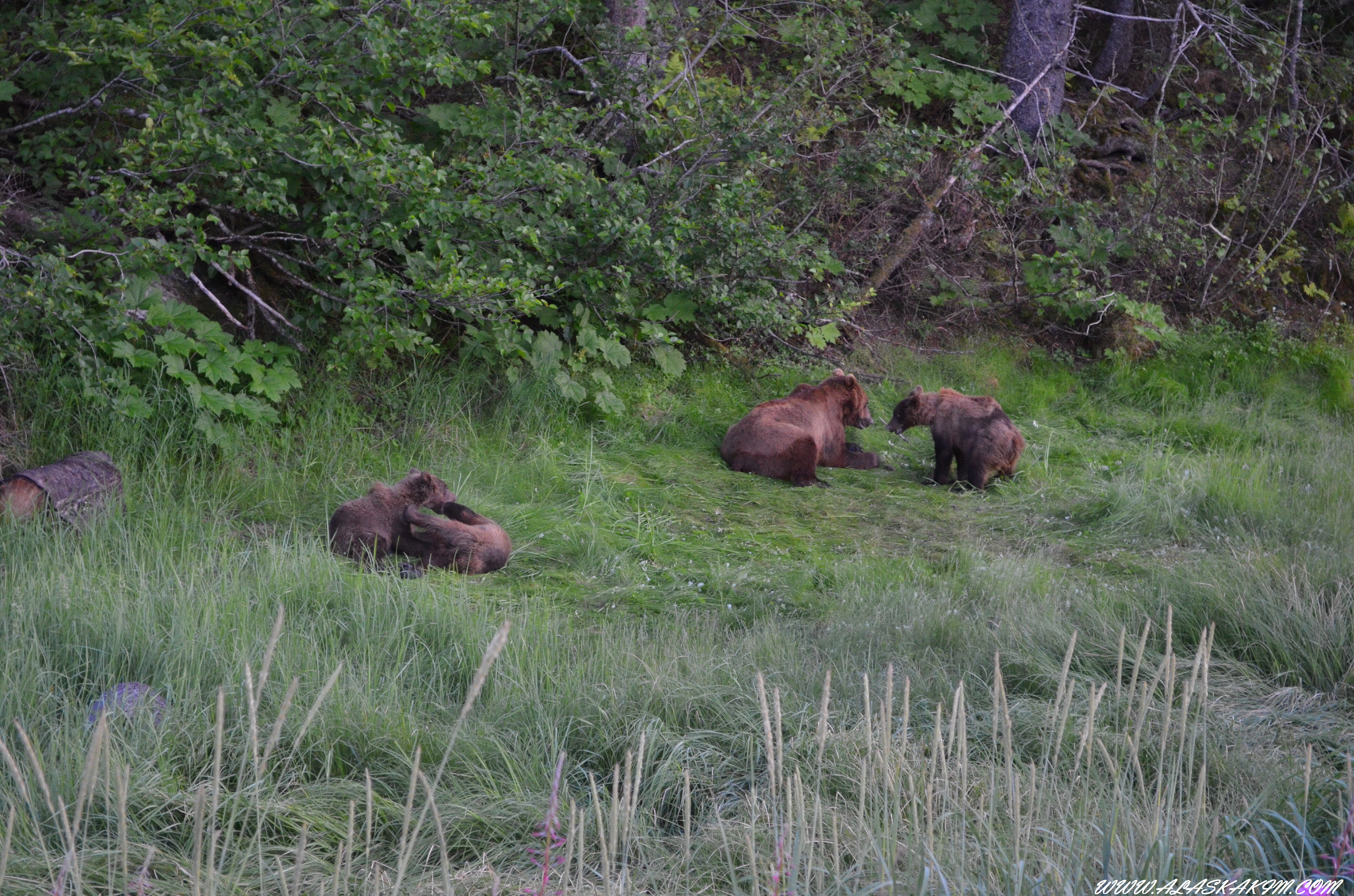 Valdez 연어 부화장에 사면 지금 만나 볼 수 있는 곰 가족입니다.