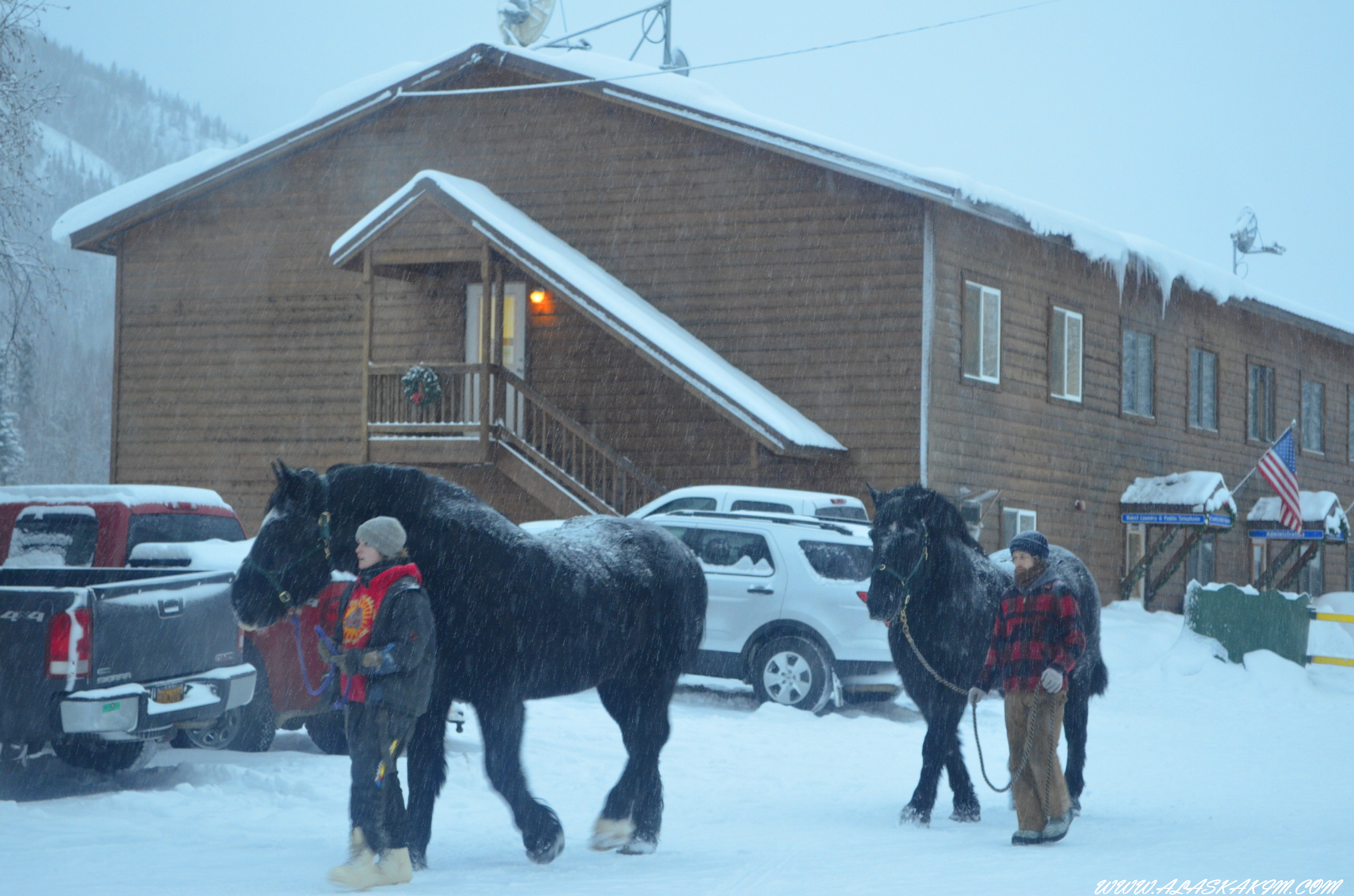알래스카 말은 추운 겨울을 이겨내기 위해 털이 긴 장모입니다.
