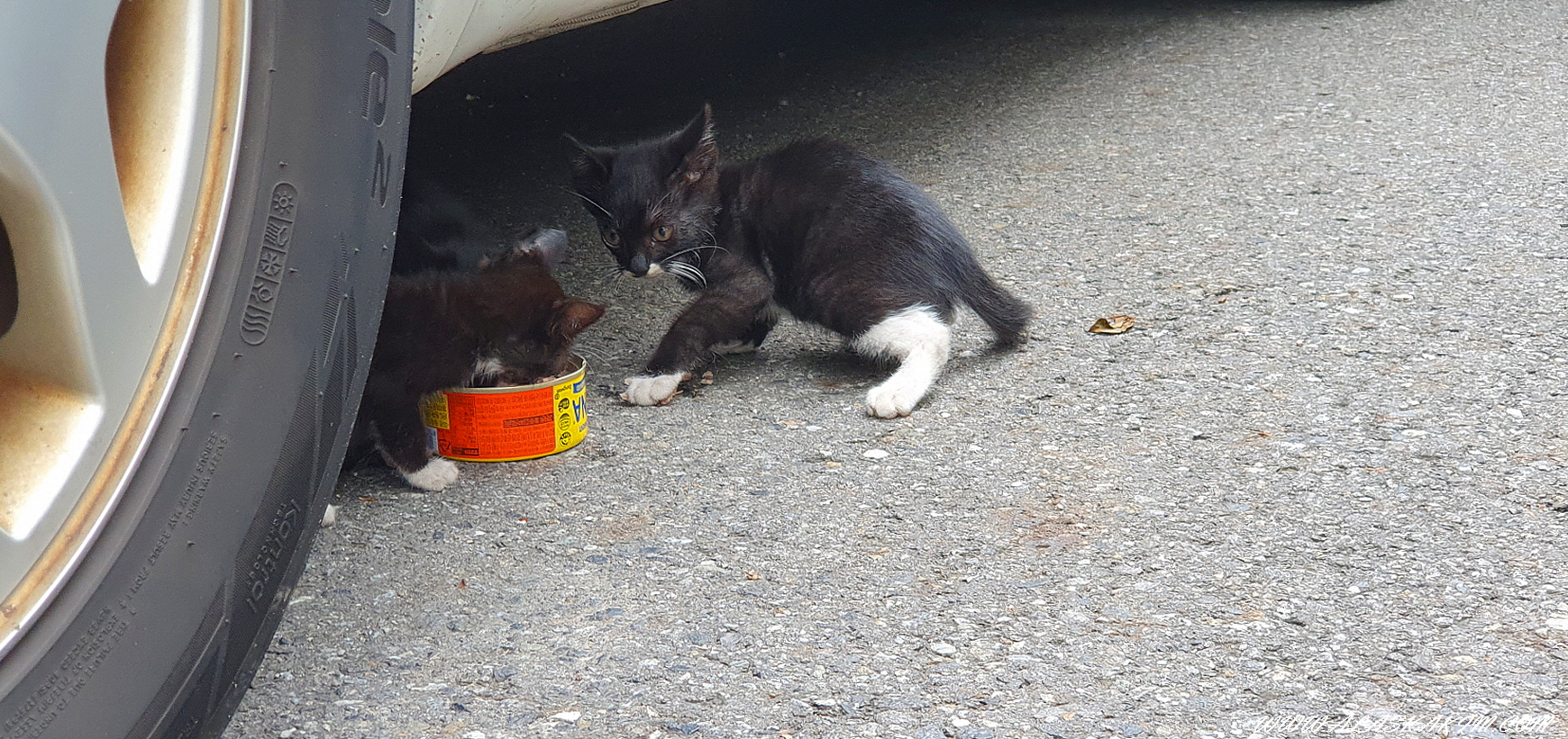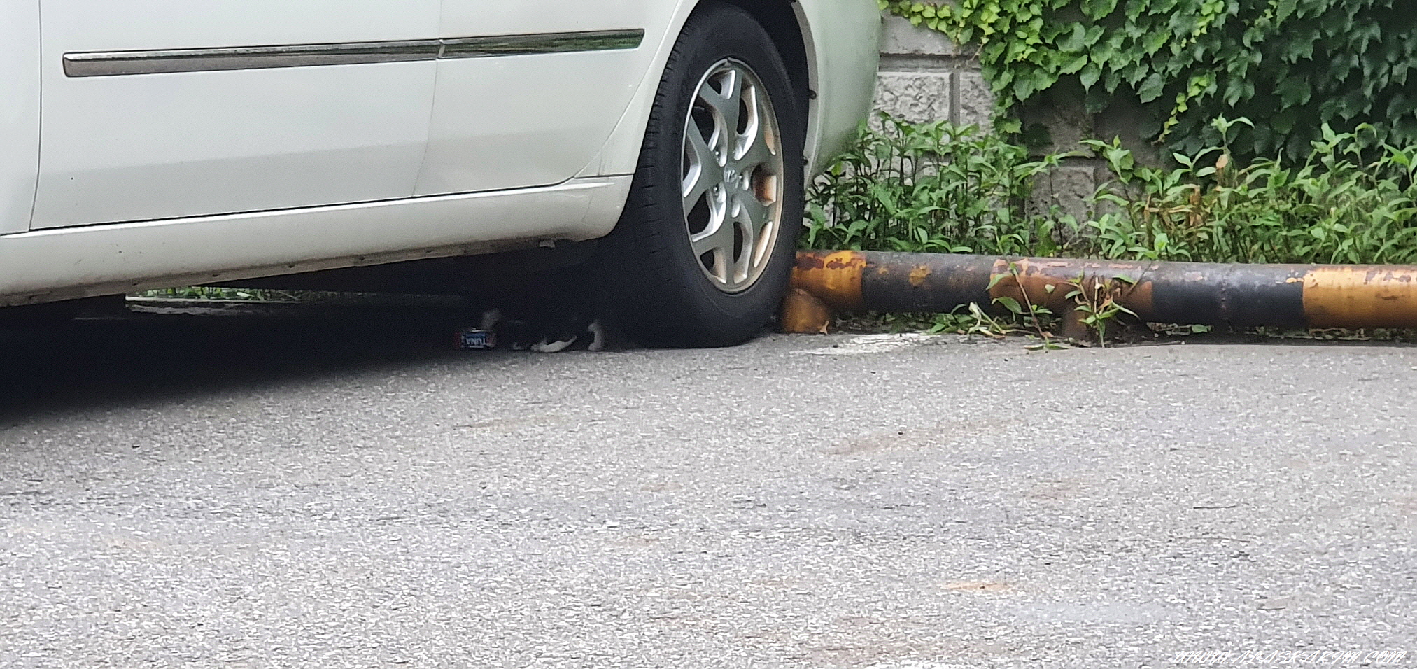 첫째 날, 우연히 지나가다가 차 밑에 있는 어린 고양이들을