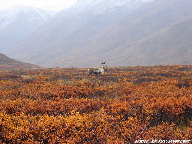 디날리 국립공원 안쪽, 운전하다가 만난 수놈 캐리부입니다.