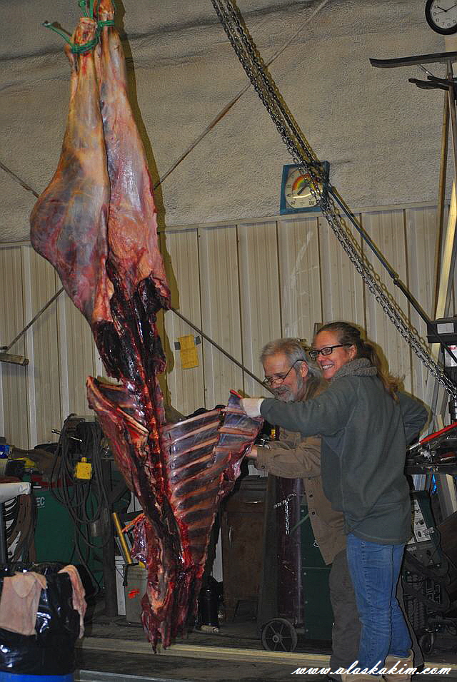 가을 사냥 시즌에 잡은 무스를 손질하는 장면을 소개