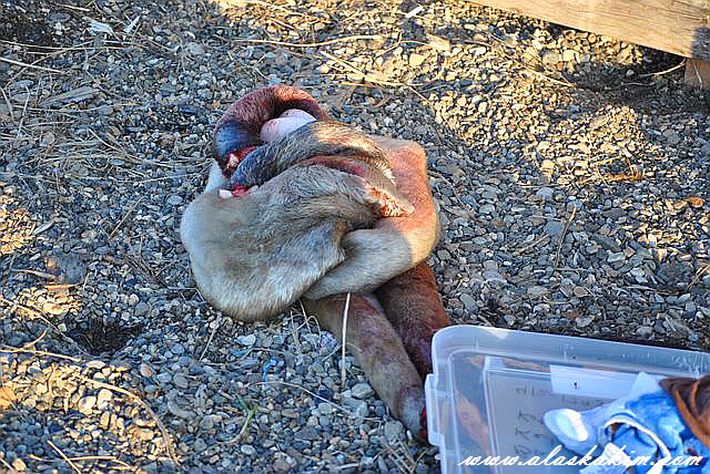 가죽을 벗기고 물개 지방과 살을 분리해서 고기는 해풍에