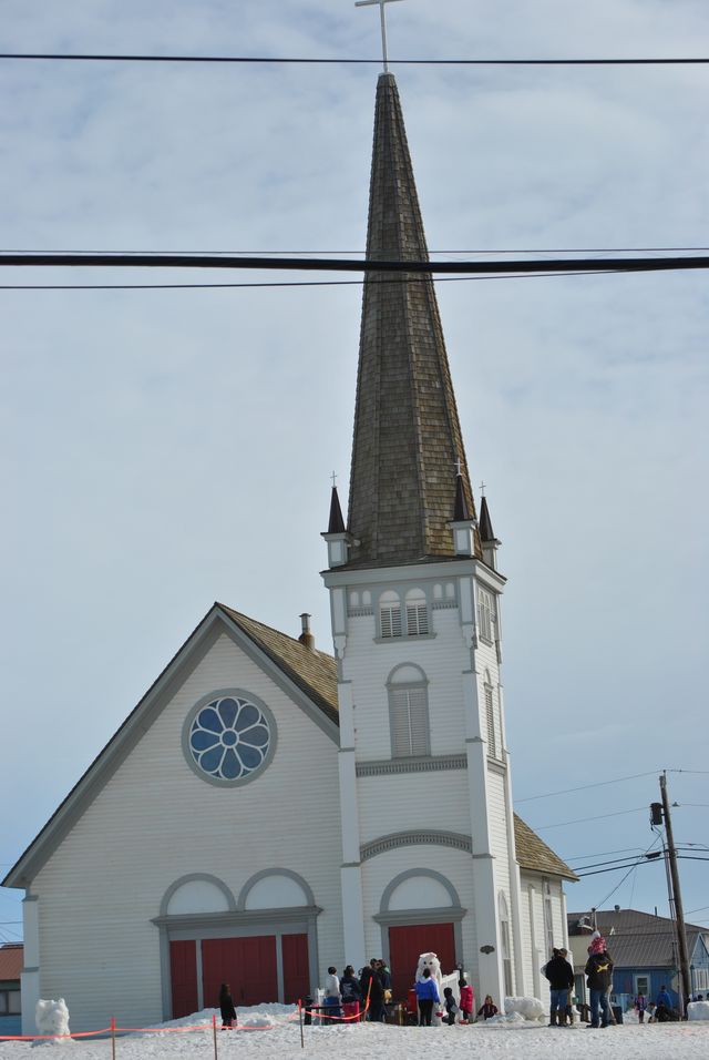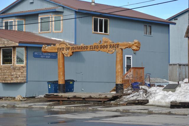 최대의 개 썰매 대회 결승지점입니다.