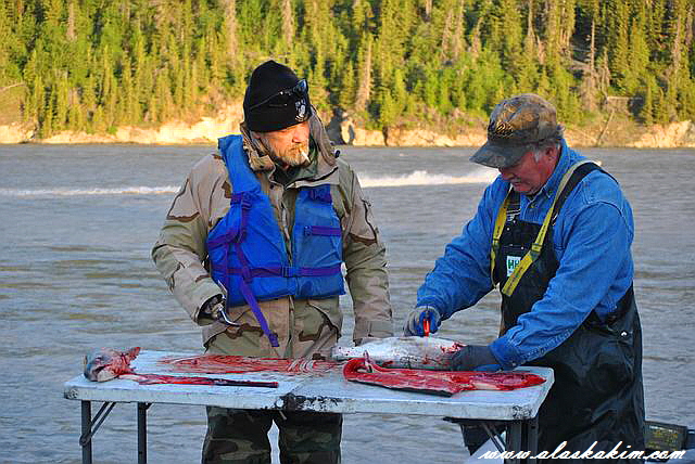 망치나 나무막대기로 연어의 머리를 쳐서 기절을 시키는 담당이었는데