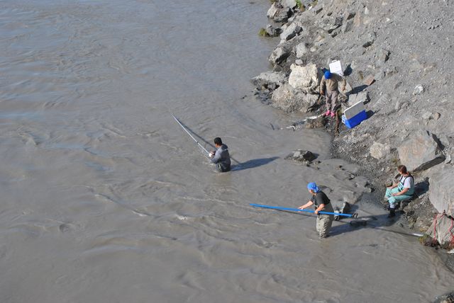 저렇게 망 안으로 들어오는 연어를 도망가지 못하게 낚아채서