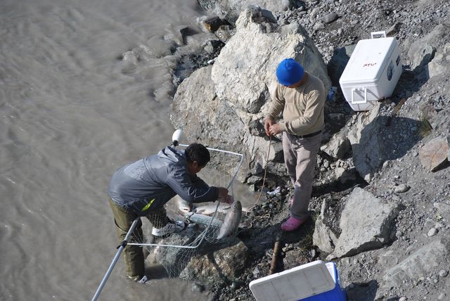 알래스카의 연어낚시중 Dip net 으로 잡는 방법은