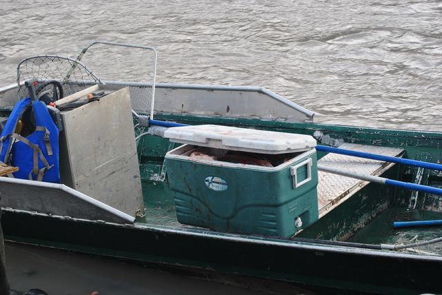 기절시킨 연어들이 쿨러에 가득 들어있네요.