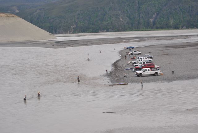 연어를 낚아 올리기에 한창입니다.