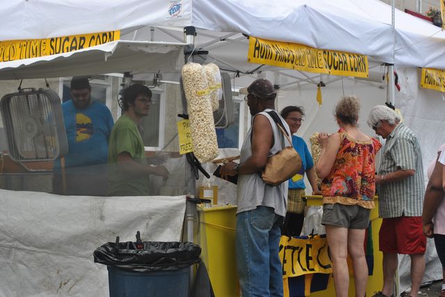 무지막지한 팝콘 한 가마니를 사는 많은 사람들.