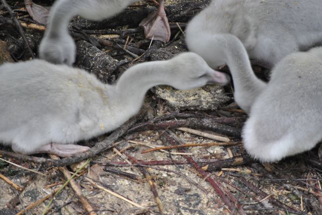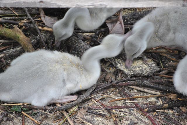 모이 먹기에 여념이 없느냐는 아기 백조들.