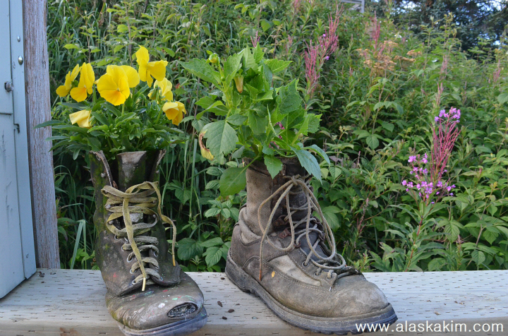 꽃집을 들렀는데 이렇게 군화에 꽃을 심었네요.